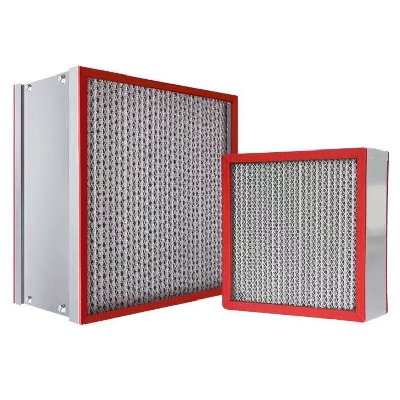 耐高温高效过滤器外框材质采用不锈钢框,耐高温超细玻璃纤维滤纸,耐高温密封胶密封,铝箔瓦楞隔板,洁净室新风空调系统,无尘车间送风口末级过滤,主防火要求和高温环境系统末级过滤,广泛应用于电子、光学、半导体、表面处理、涂装、化工、生物制药、医院、气车工业等多个领域。